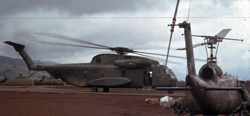We flew as a group (8 slicks and 4 gunships if memory serves) in formation from our base in Ninh Hoa to Hue Phu-Bai where we based while assigned to a Special Forces unit employing Laosian mercenaries. We did several operations around Khe Sanh during that period (photo is of U.S. Marine Corps CH-53 "Jolly Green Giant" and a Blue Star/Joker gunship at Khe Sanh).