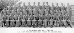 In this class photo (taken at Ft. Wolters, TX Primary Helicopter School - Class 66-13) I am in the 3rd row, 6th from left. John Kinney and Harold Ketner, roommates who later died in separate helicopter accidents and who are both featured in my Remembrance Profiles section are also in this picture. Mel Macie, my roommate in Advanced training at Ft. Rucker is also pictured.
